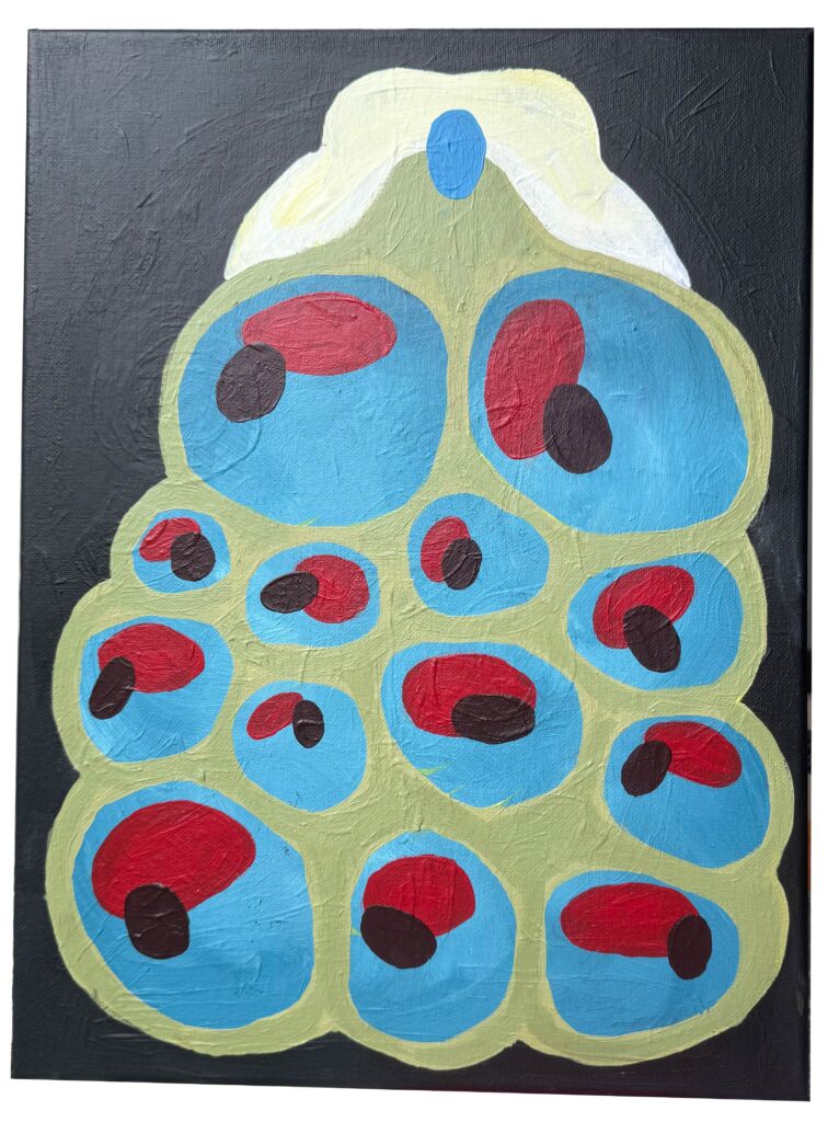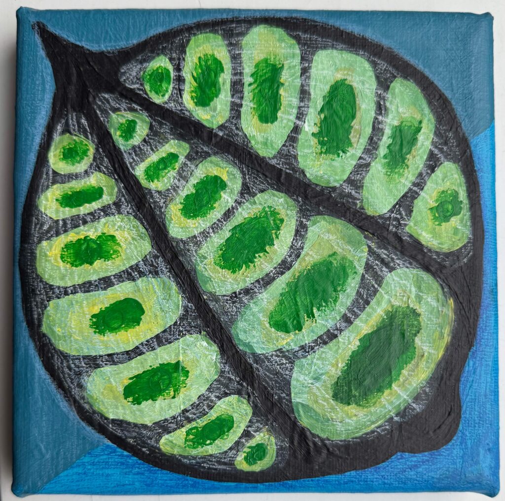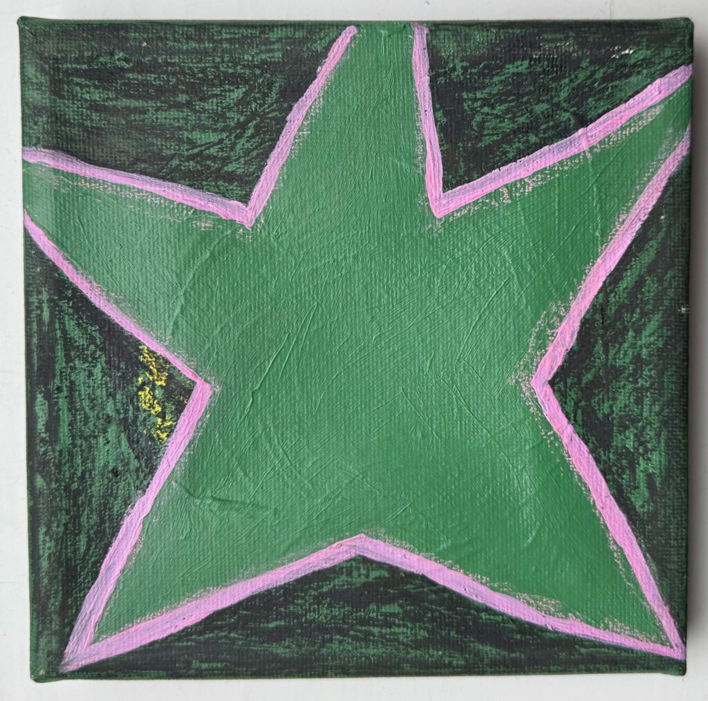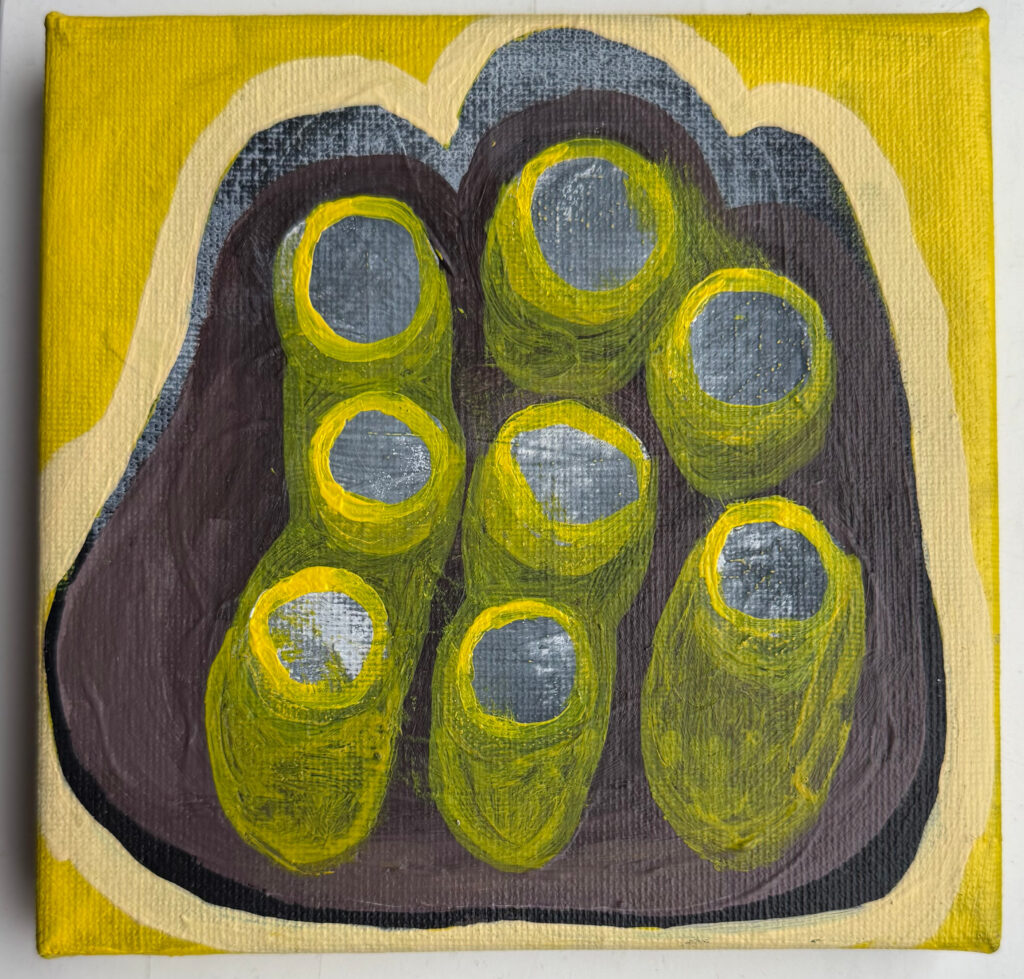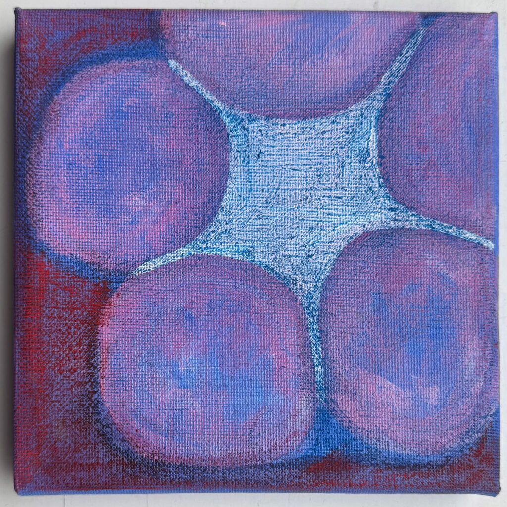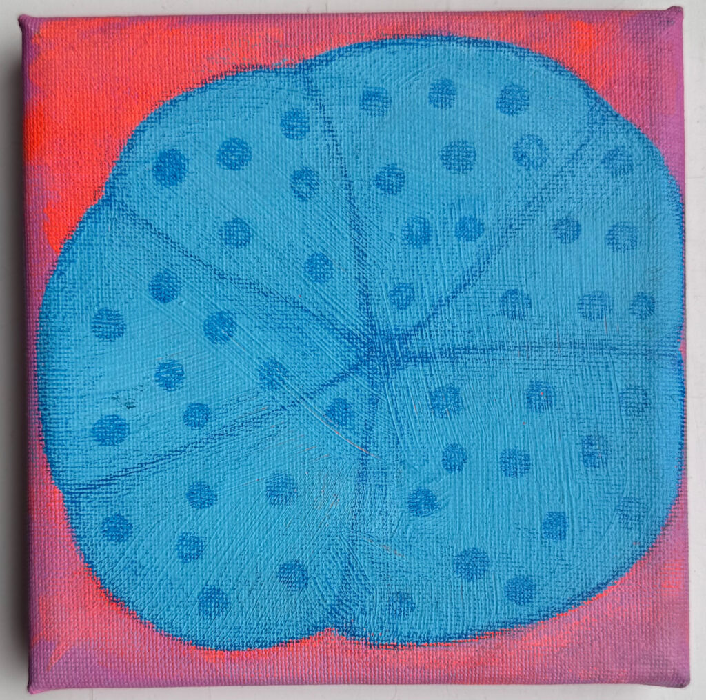 Squared, pastels, coloured pencils & acrylic paint on canvas, 15×15 cm, February 2025 ~ €550 (ex VAT)